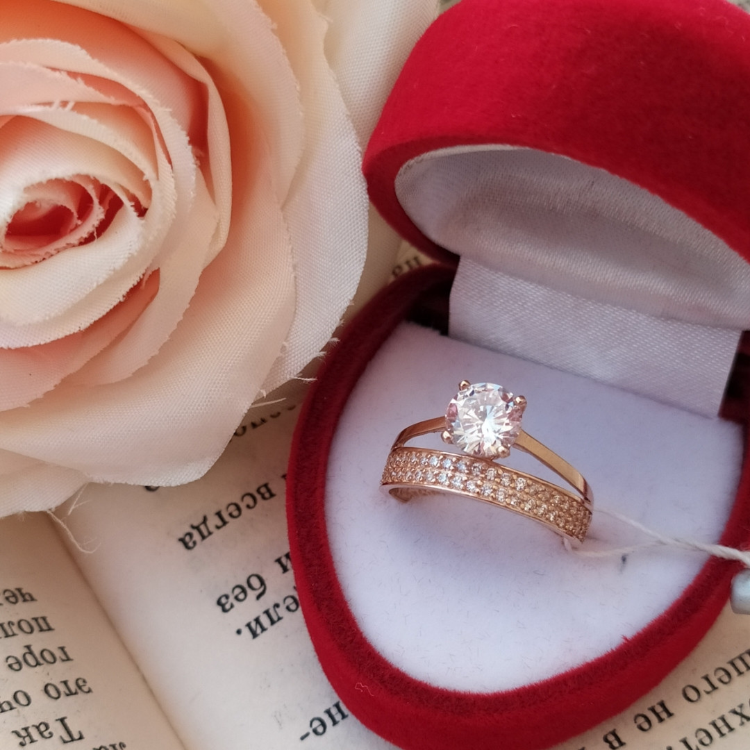 Золоте кільце з цирконієм подвійне.