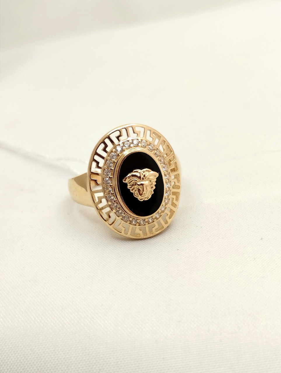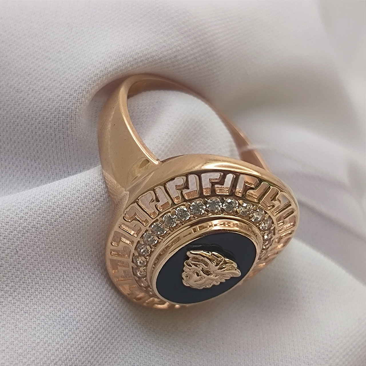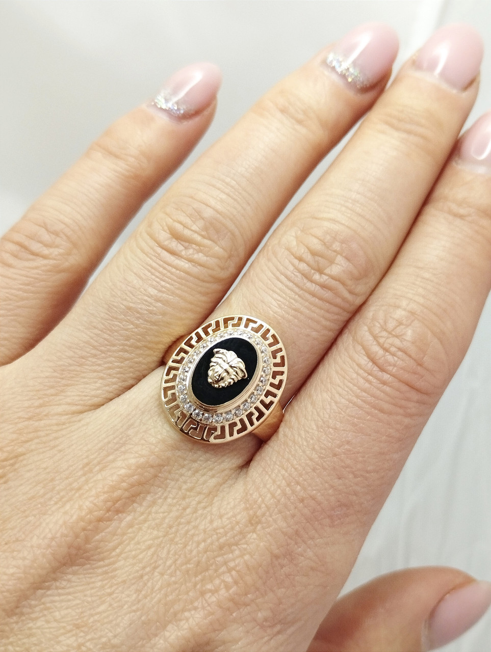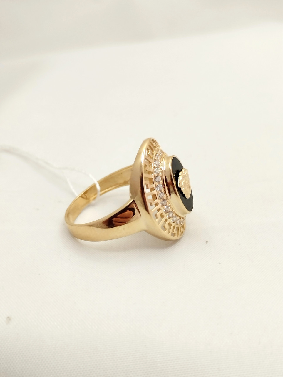 Золоте кільце з цирконієм та емаллю Ukr-Gold