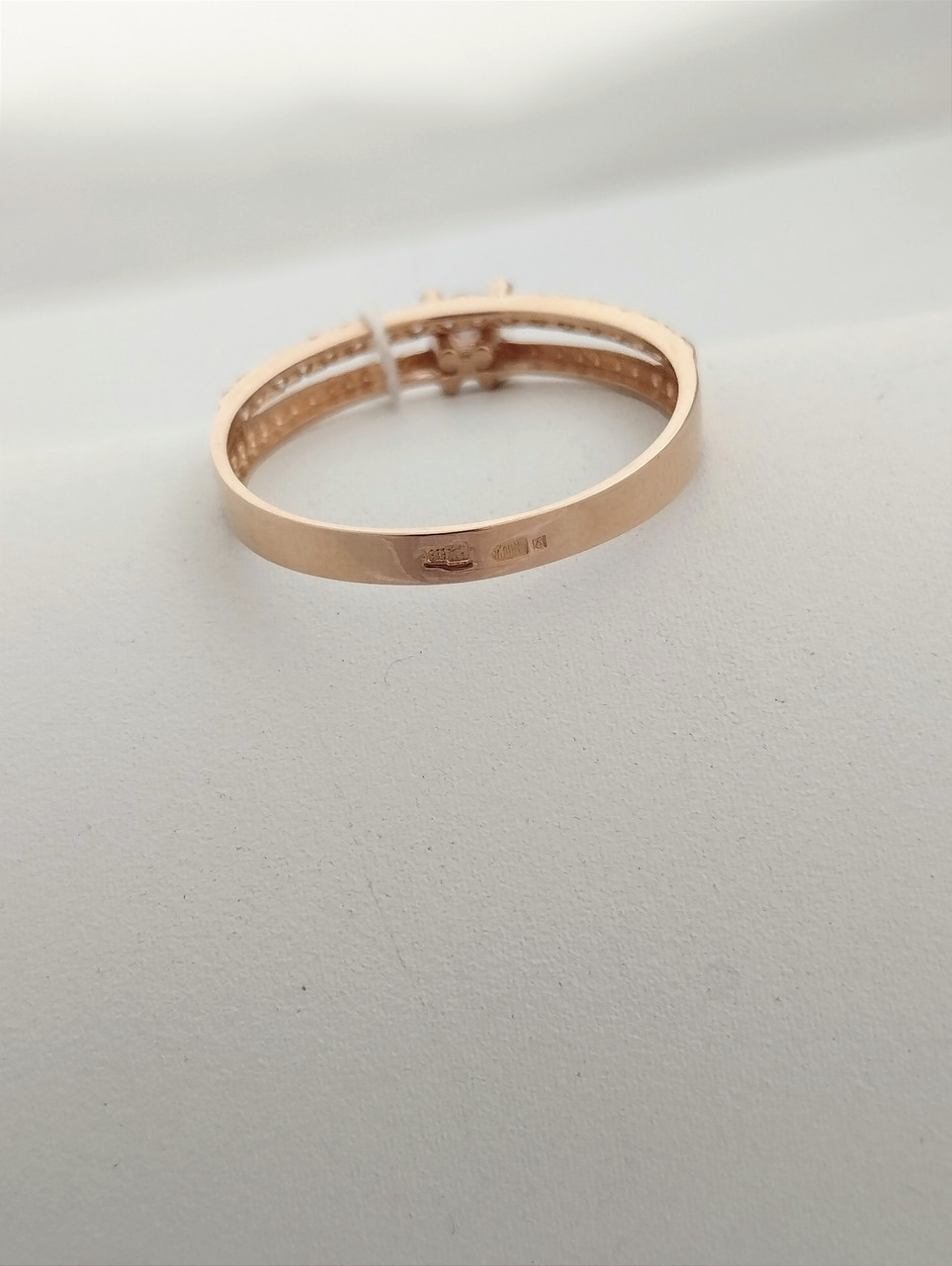 Золоте кільце 585 проби з елегантним дизайном, вишукано обрамлене цирконієм білого кольору, стане чудовим доповненням до вашого образу. Це кільце виготовлене в Україні для жінок, які цінують якість та стиль. Ідеальне для щоденного носіння або особливих подій, воно легко комбінується з іншими аксесуарами. Ми також пропонуємо різноманітність розмірів: від 16.0 мм. до 22.0 мм., щоб кожна жінка могла підібрати ідеальний варіант для себе. Зробіть свій стиль неповторним з цим привабливим золотим кільцем! Відправка замовлень відбувається кожного дня окрім понеділка, після надходження передоплати.