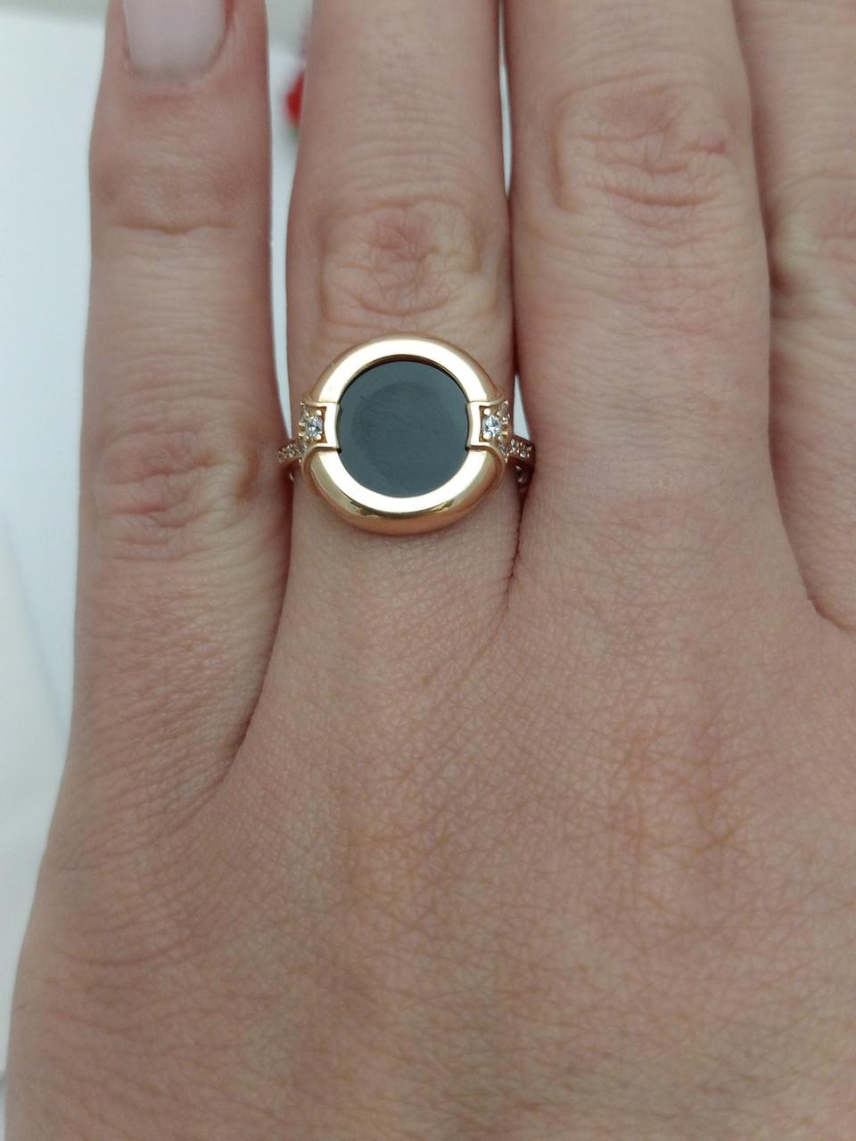 Золоте кільце 585 проби з оніксом — ідеальний вибір для жінок, які цінують елегантність і якість. Це прикраса виготовлена з червоного золота та прикрашена оніксом і фіанітом, що надає виробу витонченого вигляду. Вона стане чудовим доповненням до будь-якого вбрання, підкреслюючи вашу індивідуальність. Завдяки своїй універсальності, кільце виготовляється в розмірах від 16.0 мм до 22.0 мм, що дозволяє підібрати ідеальний варіант для кожної. Вибирайте це елегантне кільце для повсякденного носіння або особливих подій та насолоджуйтесь якістю українського виробництва. Зверніть увагу, що відправка замовлень відбувається кожного дня окрім понеділка, після надходження передоплати.
