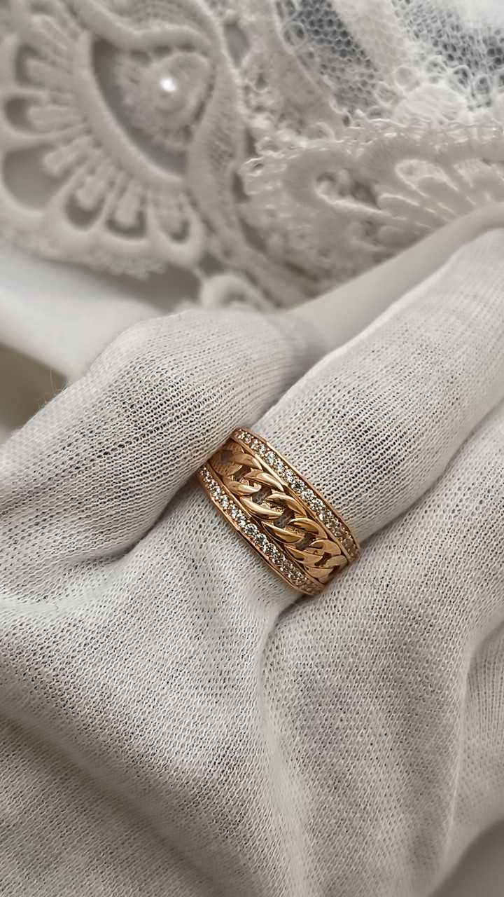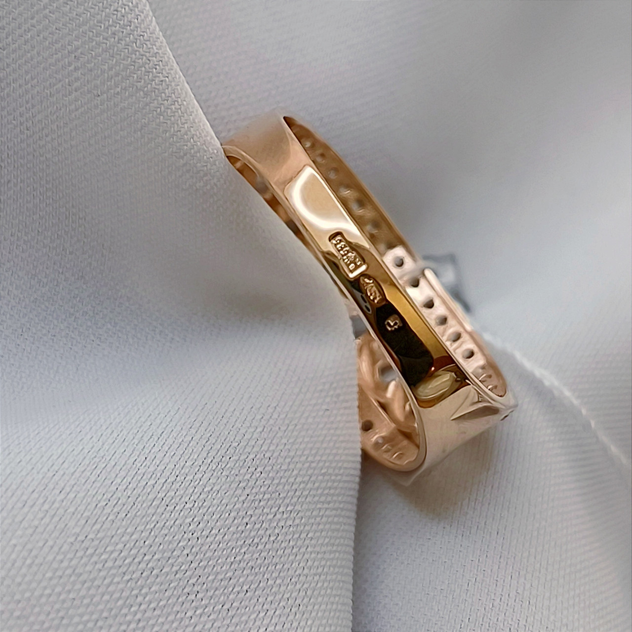 Це розкішне золоте кільце 585 проби, виконане з високоякісного червоного золота, прикрашене сяючим цирконієм. Кільце стане прекрасним доповненням до вашого образу, підкреслюючи вашу індивідуальність та стиль. Завдяки своїм елегантним лініям та яскравому дизайну, ця прикраса ідеально підходить як для щоденного носіння, так і для урочистих випадків. Виробляється в розмірах від 16.0 мм. до 22.0 мм., що дозволяє знайти ідеальний варіант для вашого пальця. Відправка замовлень відбувається кожного дня окрім понеділка, після надходження передоплати.