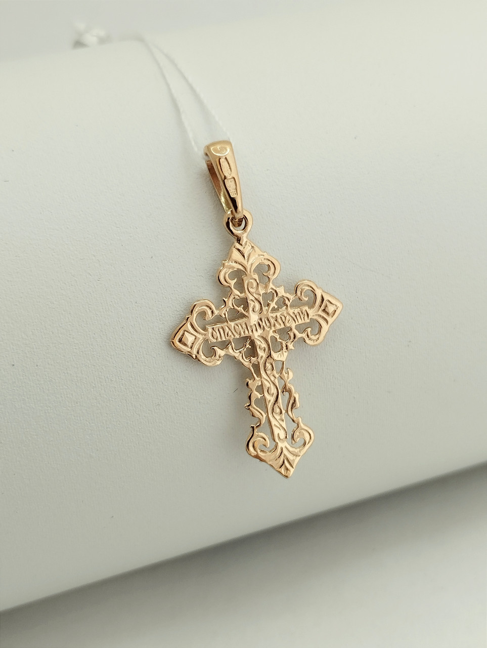 Золотий ажурний хрестик в червоному золоті 585 проби