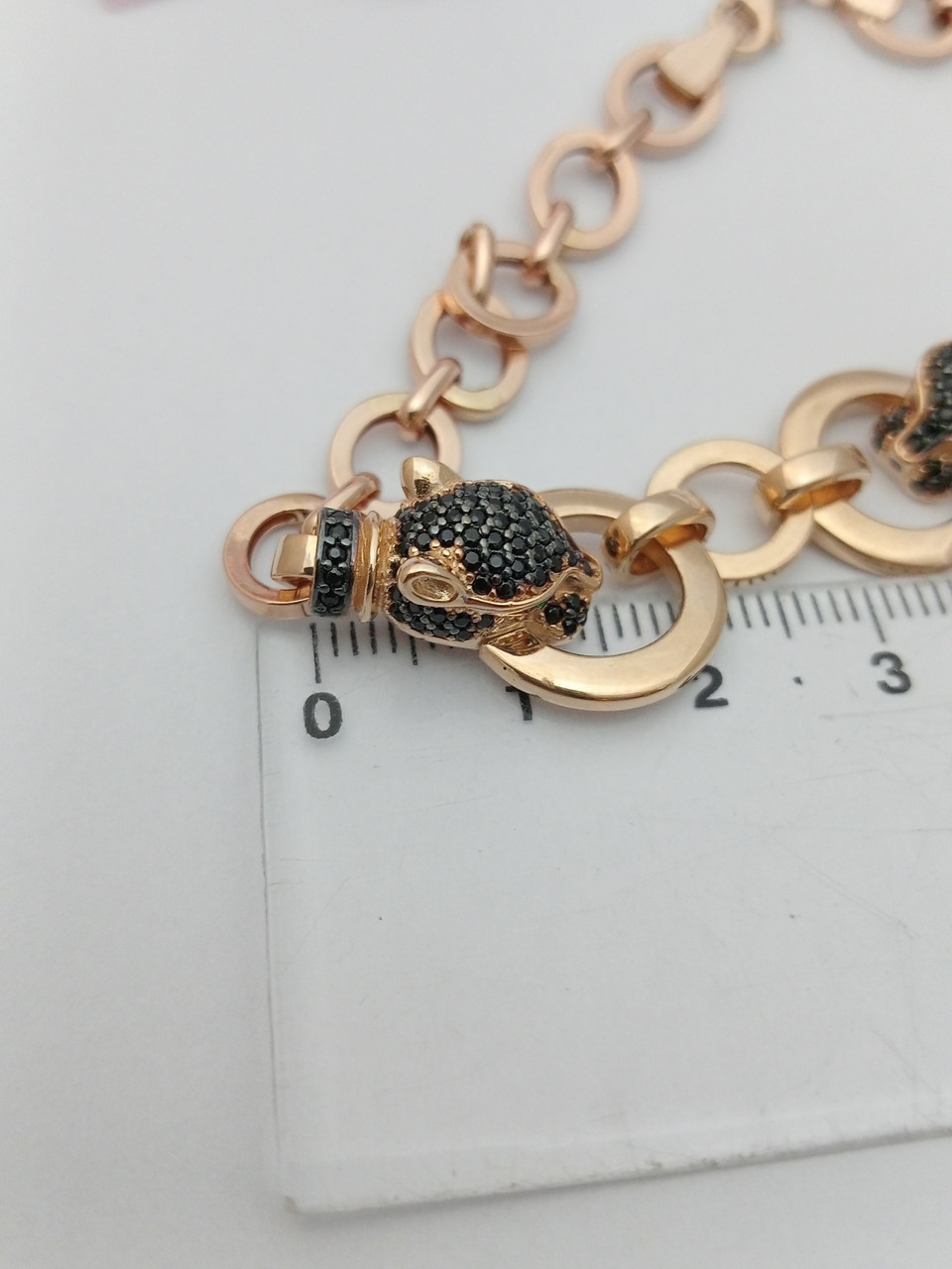 Золотий браслет Пантера 585 проби в розкішному червоному золоті – це ідеальний акцент для вашого образу. Його витончений дизайн гармонійно поєднує сучасні модні тенденції з класичним стилем. Додайте нотку елегантності до будь-якого вбрання з цим браслетом, який можна носити як на урочистих подіях, так і у повсякденному житті. Браслет виготовляється в розмірах від 16.0 см. до 23.0 см., що дозволяє легко підібрати ідеальний варіант для вашого зап’ястя. Тип застежки – надійний карабин, який забезпечує комфорт і безпеку при носінні. Відправка замовлень відбувається кожного дня, окрім понеділка, після надходження передоплати.