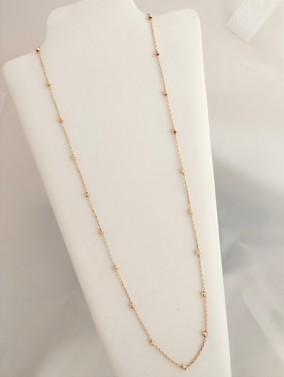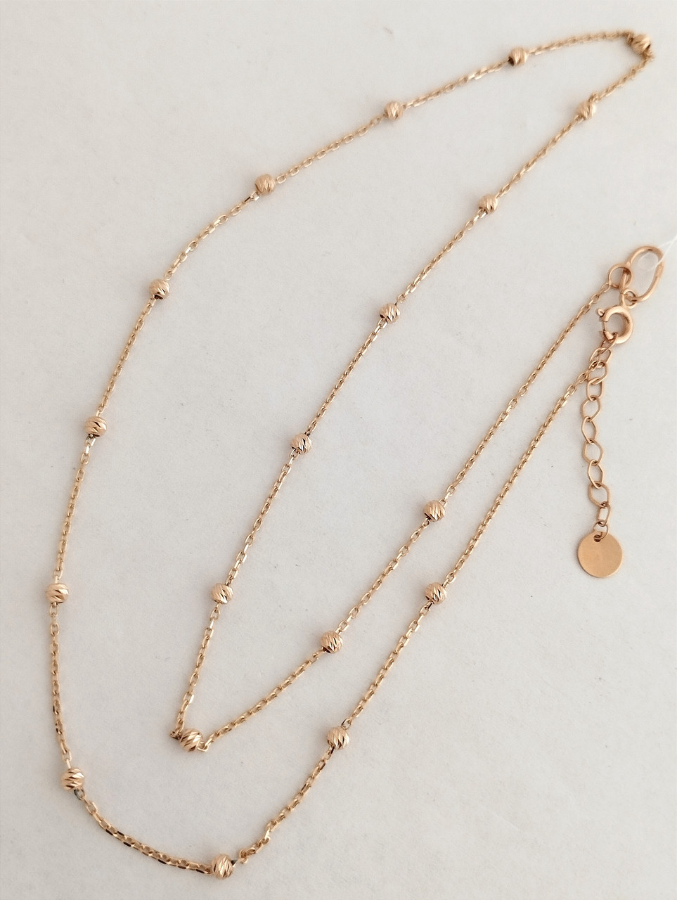 Цей розкішний золотий ланцюжок із кульками виготовлений з високоякісного золота 585 проби, що надає йому незабутнього блиску та естетичної привабливості. Відмінно підходить як для повсякденного носіння, так і для урочистих подій, цей аксесуар стане чудовим доповненням до вашого образу. Його унікальний дизайн дозволяє легко поєднувати з іншими ювелірними виробами, а регульована довжина від 45 см до 48 см дозволяє налаштувати ланцюжок під будь-який стиль. Виготовлений в Україні, цей золотий ланцюжок є новим прикладом ювелірного мистецтва. Відправка замовлень відбувається кождного дня окрім понеділка, після надходження передоплати.