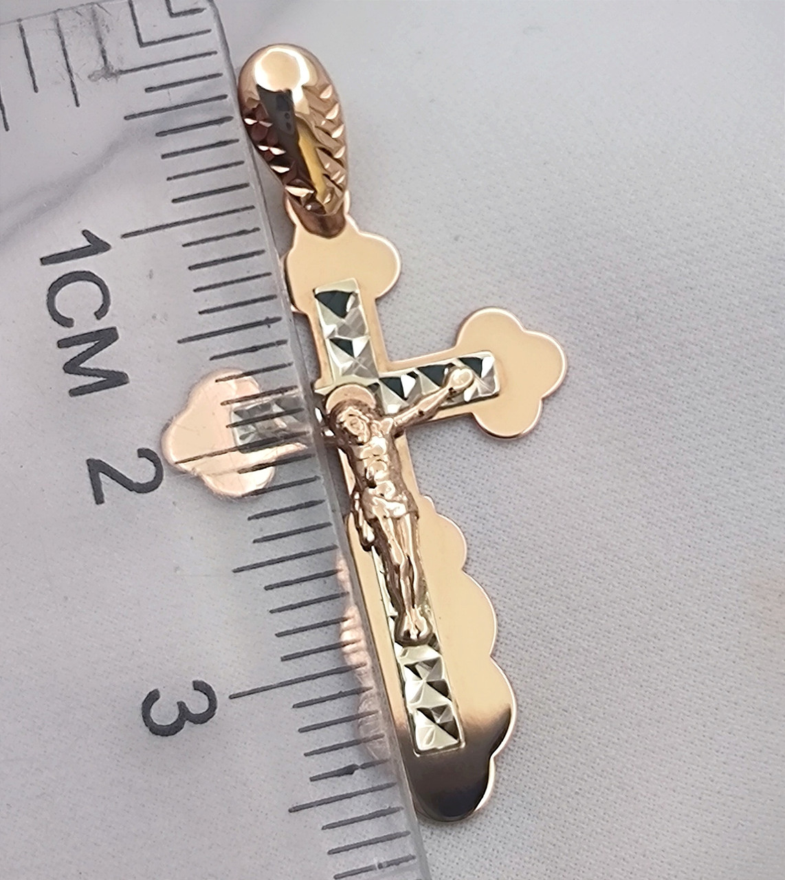 Золотий православний хрестик 585 проби — це елегантний аксесуар, що символізує віру та духовність. Виконаний з високоякісного червоного золота, він стане чудовим доповненням до будь-якого образу. Завдяки своєму універсальному дизайну, цей хрестик підходить як для щоденного носіння, так і для особливих випадків. Перевага цього виробу полягає в його довговічності та стильному вигляді, завдяки чому ви завжди будете виглядати вишукано. Відправка замовлень відбувається кождного дня окрім понеділка, після надходження передоплати.