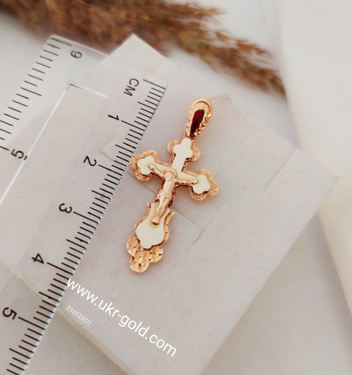 Золотий хрест з розп’яттям виконаний з поєднання червоного і білого золота 585 проби. Цей витончений виріб стане не лише чудовим аксесуаром, а й символом вашої віри. Золотий хрест чудово підходить для повсякденного носіння, а також для особливих подій, додаючи вишуканості та елегантності вашому образу. Відправка замовлень відбувається кождного дня окрім понеділка, після надходження передоплати.