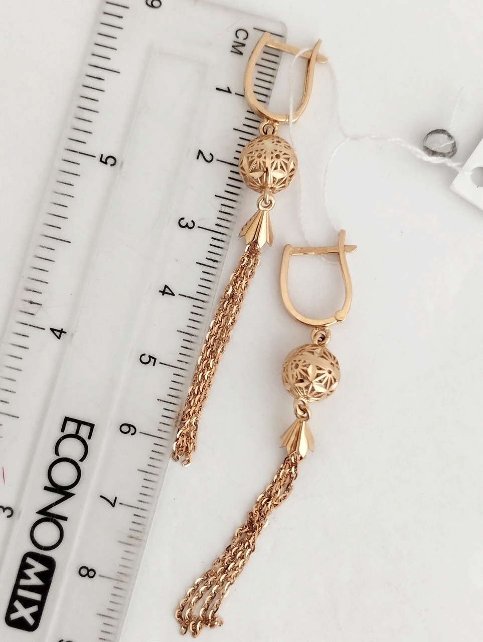 Золоті сережки висячі 585 проби – це ідеальний аксесуар для жінок, які цінують стиль та вишуканість. Глибокий червоний колір золота надає сережкам елегантності, а англійська застібка забезпечує надійність та зручність у носінні. Ці сережки підходять для будь-якої нагоди, будь то святкова подія або повсякденний вихід. Ви можете поєднувати їх з різноманітними прикрасами, щоб створити неповторний образ. Виробляються в Україні, нові та завжди в моді, сережки стануть чудовим доповненням до вашої колекції. Відправка замовлень відбувається кожного дня окрім понеділка, після надходження передоплати.