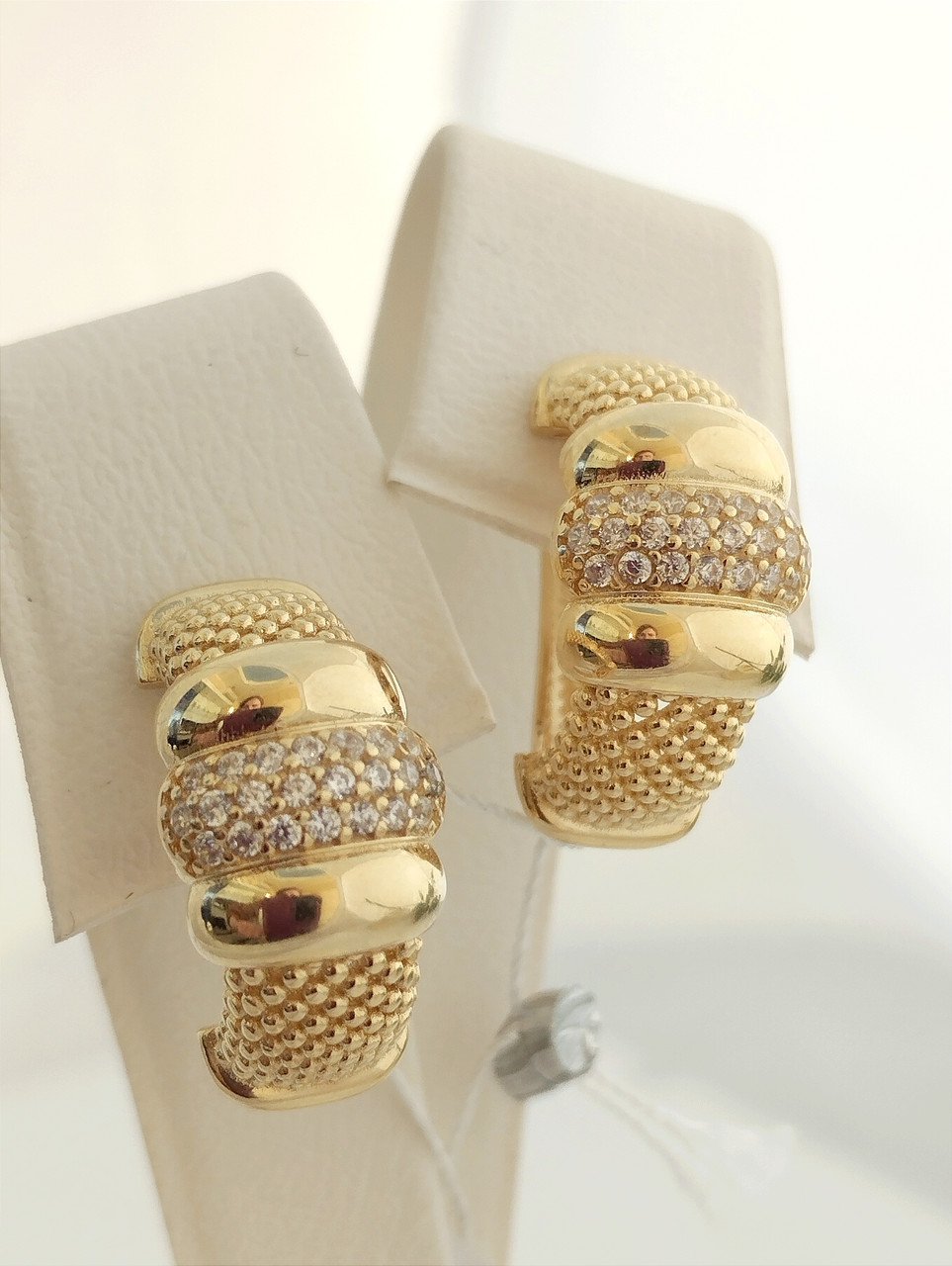 Ці розкішні золоті сережки з жовтого золота 585 проби – ідеальне доповнення до вашого образу. Вони створені для жінок, які цінують вишуканість та елегантність. Завдяки витонченому дизайну та блискучим білосніжним цирконіям, сережки подарують вам відчуття розкіші в будь-якій ситуації. Вони стають ідеальним вибором для вечірніх виходів або святкових подій. Виробляються в Україні, мають новий стан, тому ви можете бути впевнені в їх якості та довговічності. Сережки будуть чудовим подарунком для особливих моментів. Відправка замовлень відбувається кожного дня, окрім понеділка, після надходження передоплати.