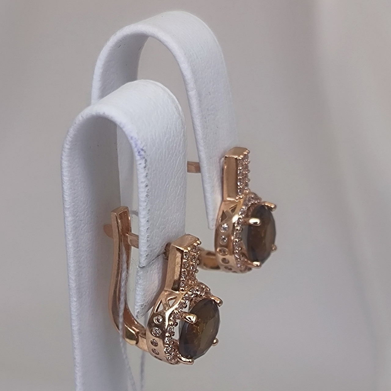Золоті сережки з раухтопазом 585 проби – це витвір ювелірного мистецтва, що вразить своїм елегантним дизайном та неперевершеним блиском. Кожна деталь сережок втілює в собі магічний відтінок коричневого раухтопазу, який гармонійно поєднується з червоним золотом. Ці сережки ідеально доповнять ваш образ на будь-якій події – від романтичної вечері до святкового заходу. Вони стануть чудовим подарунком для близької людини, який підкреслить її витонченість та стиль. Відправка замовлень відбувається кожного дня окрім понеділка, після надходження передоплати.