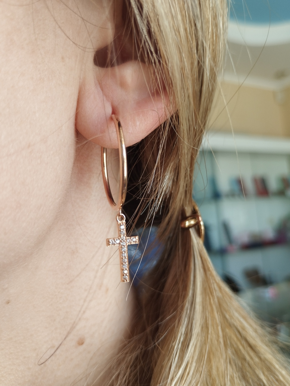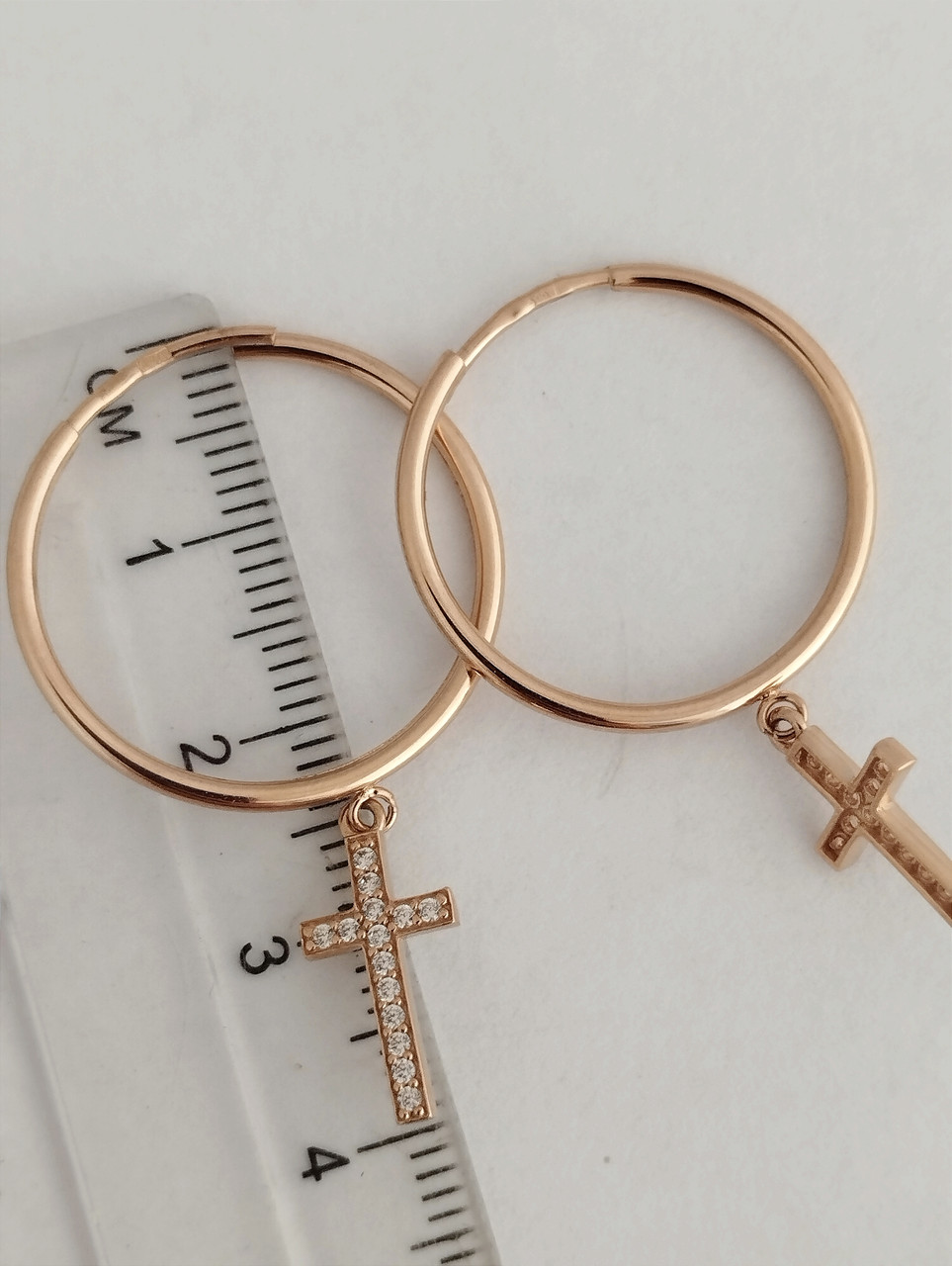 Золоті сережки кільця з хрестиками, виготовлені з високоякісного золота 585 проби, стануть відмінним доповненням до будь-якого аксесуара. Вони виготовлені в яскравому червоному кольорі, що додає їм стильності та елегантності. В вставках використано цирконій, який надає сережкам особливого блиску. Завдяки типу застібки «конго», їх легко носити протягом усього дня, забезпечуючи комфорт та безпеку. Ці сережки підходять для будь-якої нагоди, від повсякденного носіння до святкових заходів. Відправка замовлень відбувається кожного дня, окрім понеділка, після надходження передоплати.