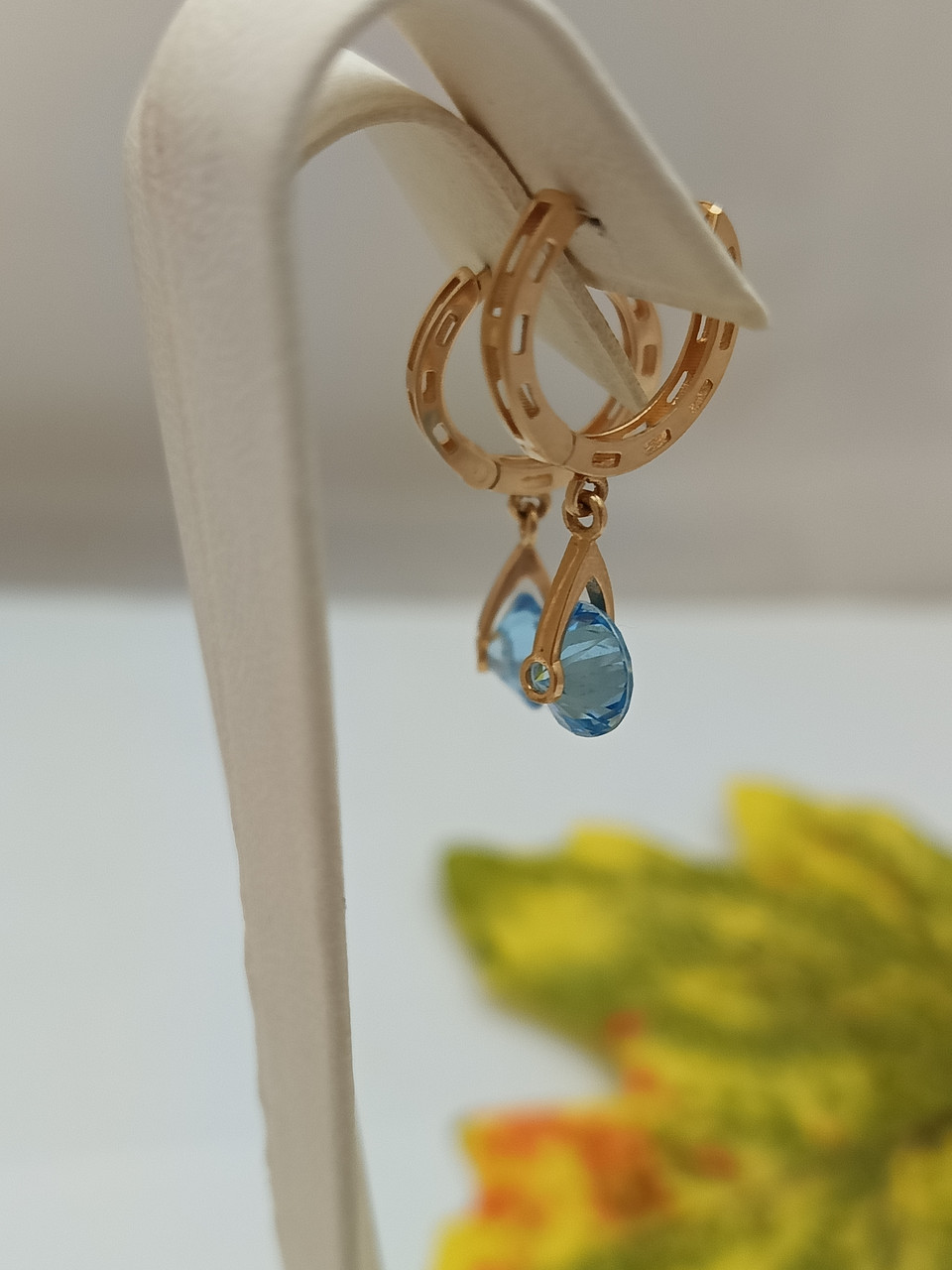 Золоті сережки 585 проби, виготовлені з високоякісного червоного золота, стануть ідеальним доповненням до будь-якого вбрання. Вони прикрашені яскравими голубими цирконіями, які додають витонченості та розкоші. Ці сережки підходять для щоденного носіння, а також для особливих випадків, коли потрібно вразити. Завдяки зручному типу застежки конго, ви зможете легко їх надягати і знімати. Виробляються в різній ваговій категорії, що дозволяють підібрати оптимальний варіант під ваш стиль. Відправка замовлень відбувається кожного дня окрім понеділка, після надходження передоплати.