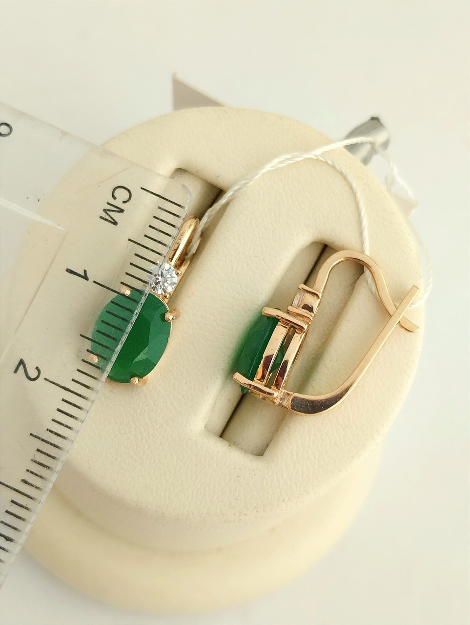 Ці ексклюзивні золоті сережки 585 проби несуть в собі витончену красу та стиль. Виготовлені з червоного золота, вони підкреслюють вашу жіночність і елегантність. Наявність зеленого цирконію надає їм неповторного шарму, що притягує погляди та викликає захоплення оточуючих. Ці сережки ідеально підійдуть для різноманітних святкових заходів або романтичних вечорів. Ви можете поєднувати їх з іншими прикрасами, створюючи унікальний стиль. Відправка замовлень відбувається кожного дня окрім понеділка, після надходження передоплати.