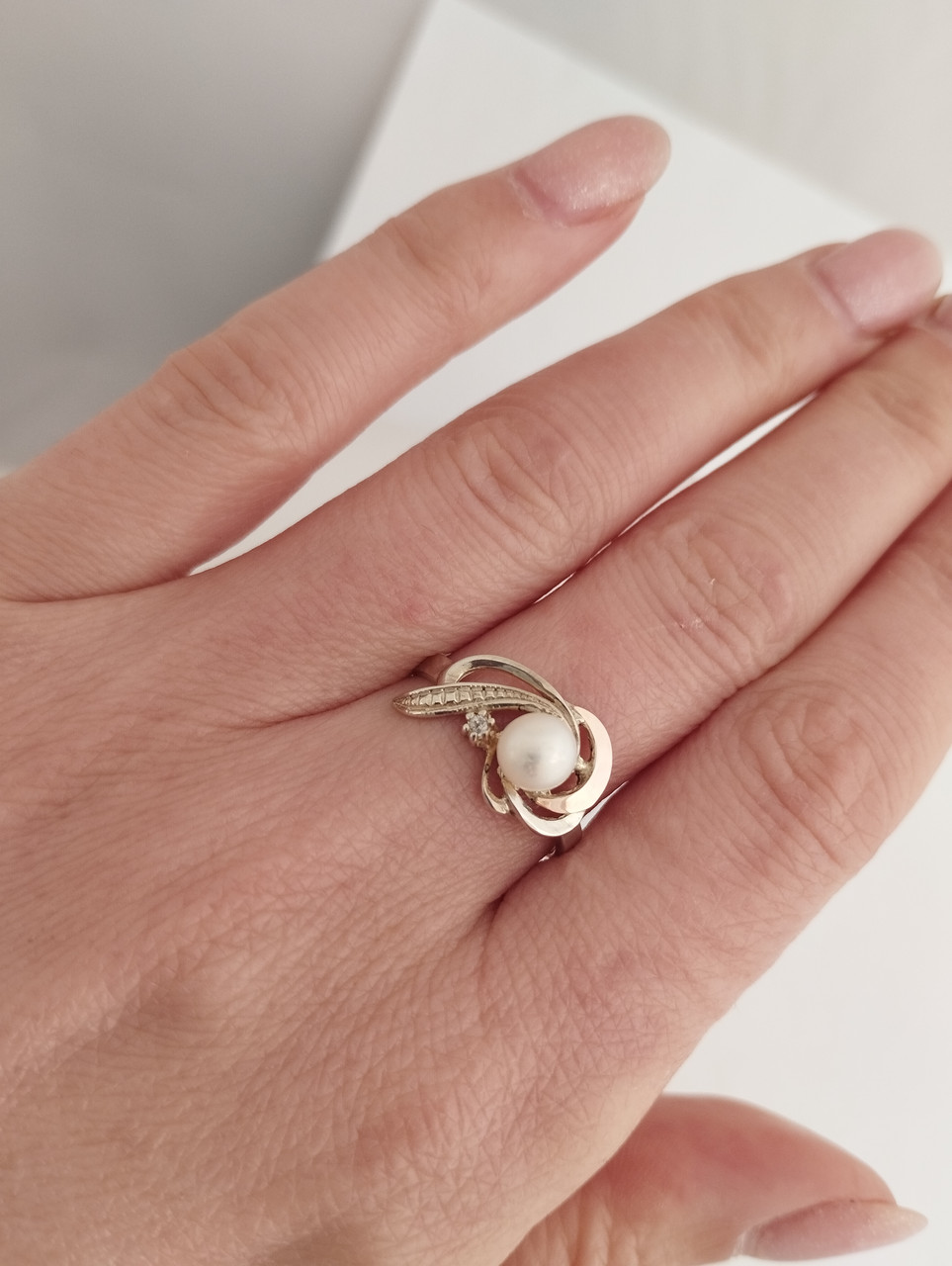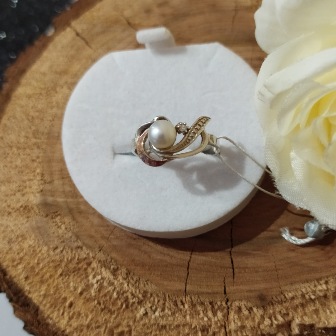 Кільце срібне з золотими пластинами і перлами
