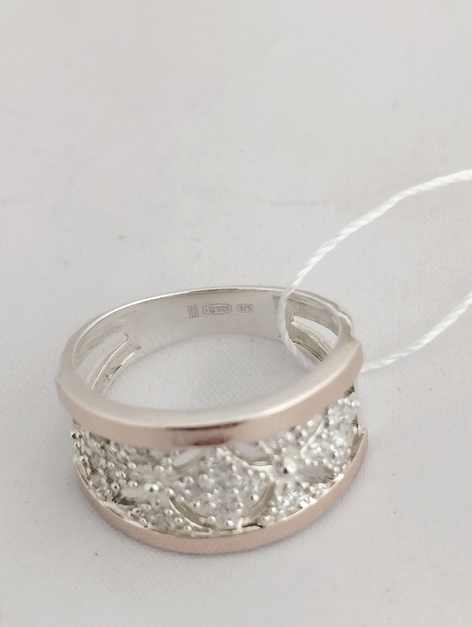 Срібне кільце зі вставками золота 375 проби