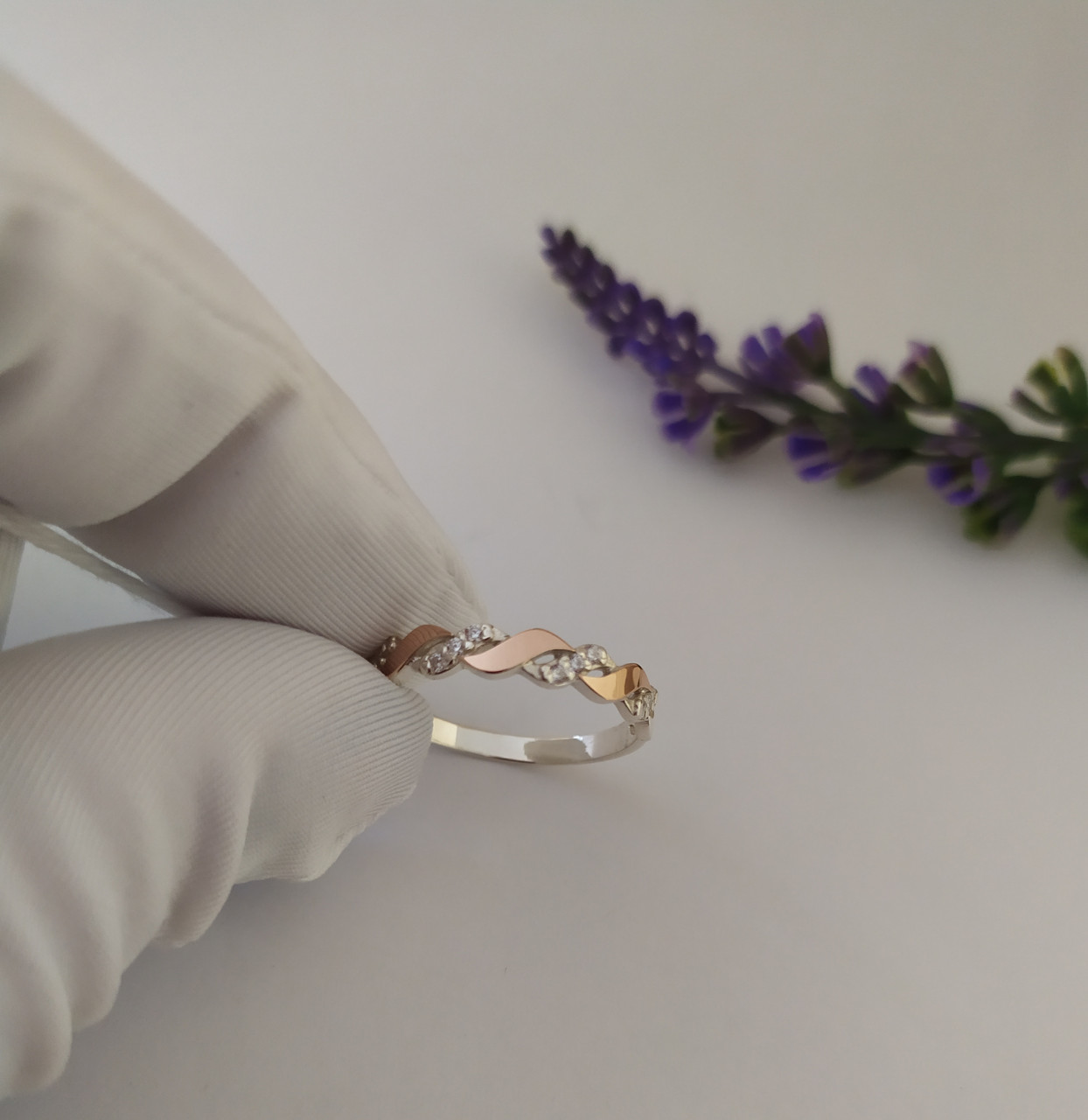 Срібне кільце з золотими пластинами і цирконієм 0346.10
