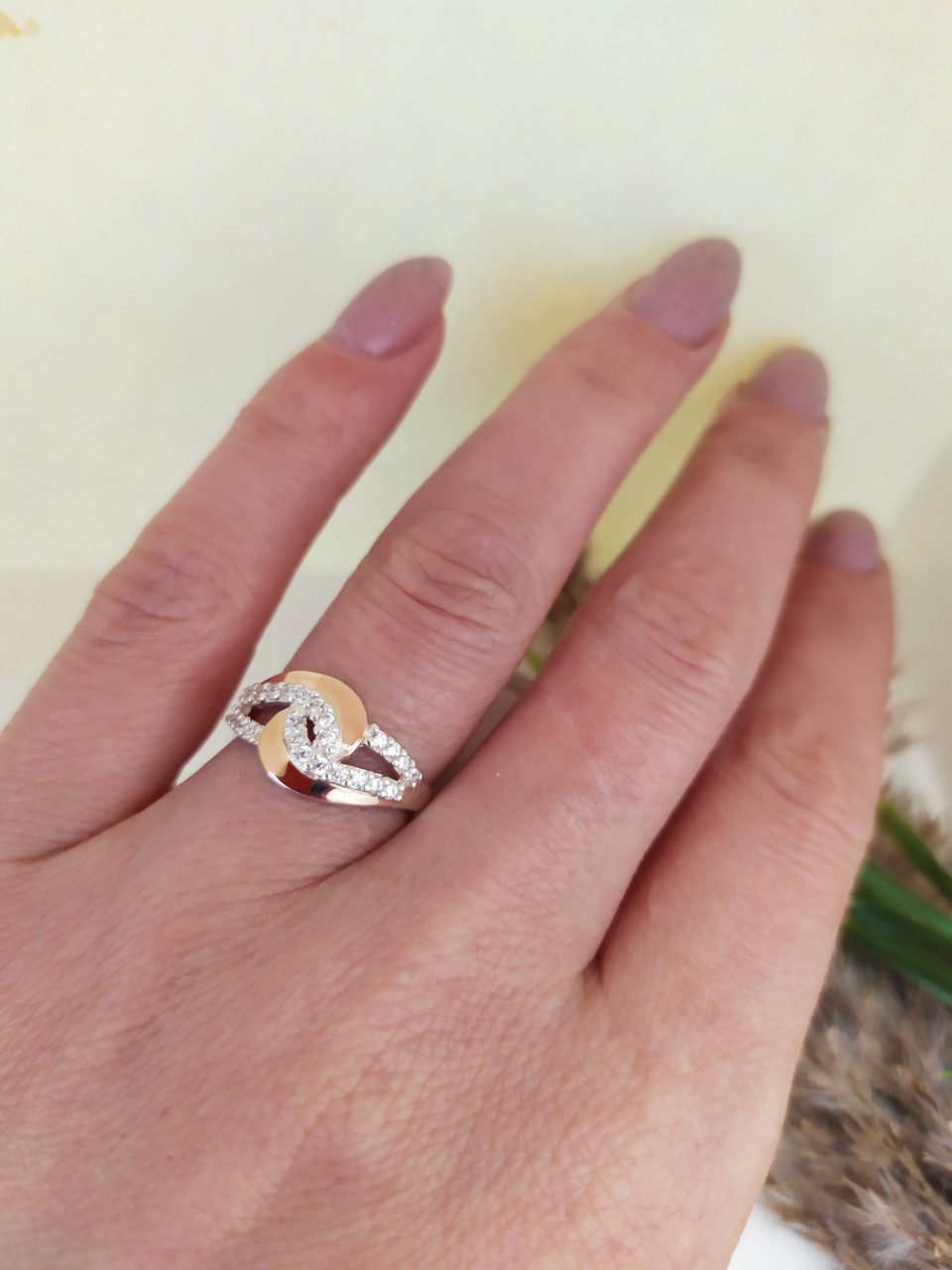 Срібне кільце з золотими пластинами