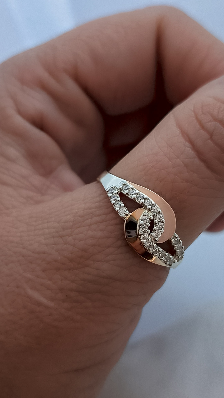 Срібне кільце 925 проби з золотими пластинами 375 проби – це ідеальний вибір для жінок, які цінують розкіш у простоті. Ексклюзивний дизайн з фіанітами надає йому додаткової привабливості. Кільце виготовлено в Україні з найбільшою уважністю до деталей, що гарантує його високу якість. Це прикраса стане відмінним супутником для будь-якої події – від повсякденної прогулянки до урочистого вечора. Виробляється в розмірах від 16.0 мм до 22.0 мм, що дозволяє кожній жінці знайти ідеальне для себе. Відправка замовлень відбувається кожного дня, окрім понеділка, після надходження передоплати.