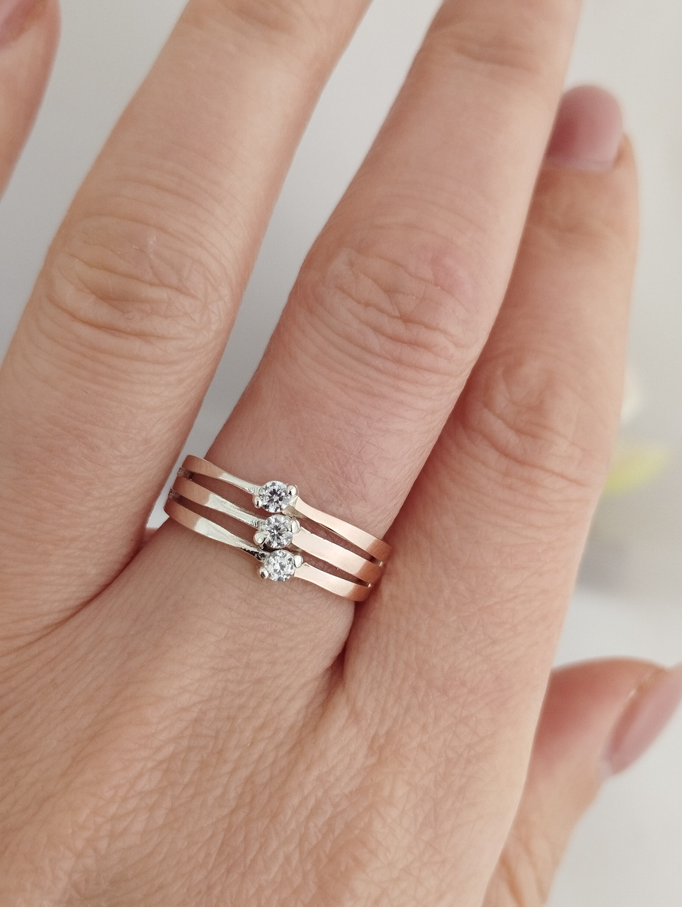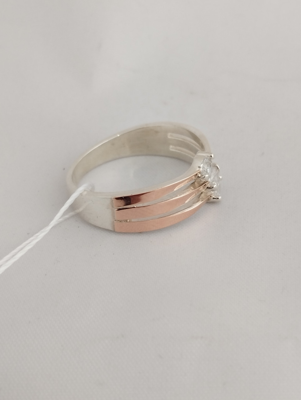 Срібне кільце із золотими пластинами та цирконієм Ukr-gold