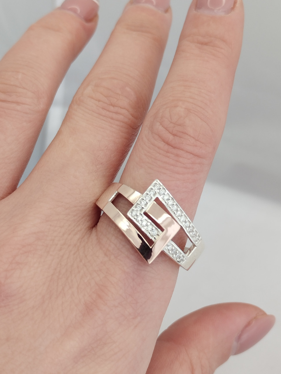 Срібне кільце 925 проби з вишуканими золотими пластинами 375 проби та білосніжним цирконієм – ідеальний аксесуар для жінок, які цінують розкіш і стиль. Це кільце додає ніжності та елегантності будь-якому образу, роблячи його чудовим вибором для повсякденного носіння або особливих подій. Воно виробляється в розмірах від 16.0 мм. до 22.0 мм. Технологічно продумане поєднання срібла та золота робить його універсальним – ви можете носити його самостійно або в комплекті з іншими прикрасами. Зробіть свій вигляд завершеним за допомогою цього ексклюзивного ювелірного виробу! Відправка замовлень відбувається кождного дня окрім понеділка, після надходження передоплати.