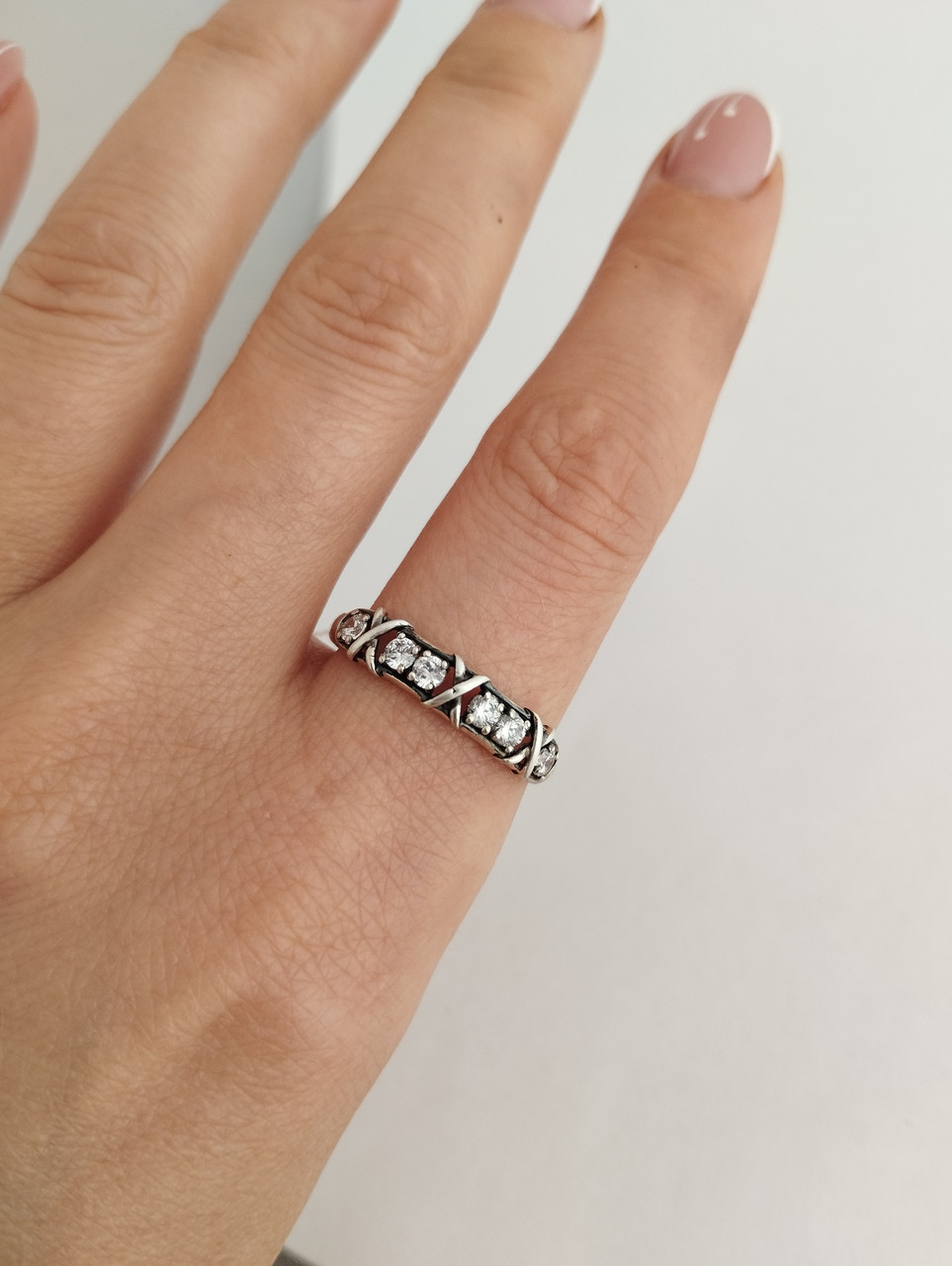 Це елегантне срібне кільце 925 проби стане ідеальним доповненням до вашого образу. Виконане із якісного срібла, кільце має чорнене покриття, що надає йому унікального вигляду. Вставка з цирконію підкреслює розкіш та витонченість дизайну. Це кільце, яке підходить для будь-якої нагоди: від вечірок до повсякденного носіння. Виберіть розмір від 16.0 мм. до 22.0 мм. і доповніть свій стиль цим вишуканим аксесуаром. Відправка замовлень відбувається кождного дня окрім понеділка, після надходження передоплати.