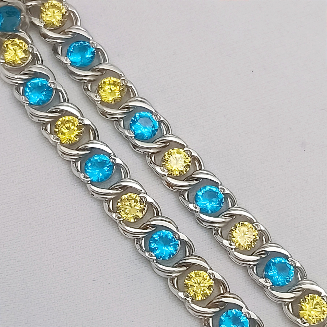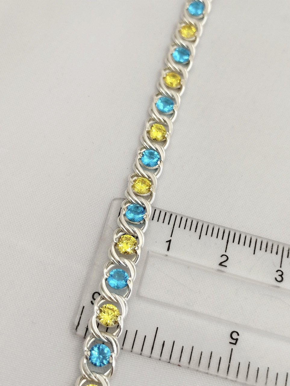 Ви переглядаєте: Срібний браслет з цирконієм патріотичний браслет