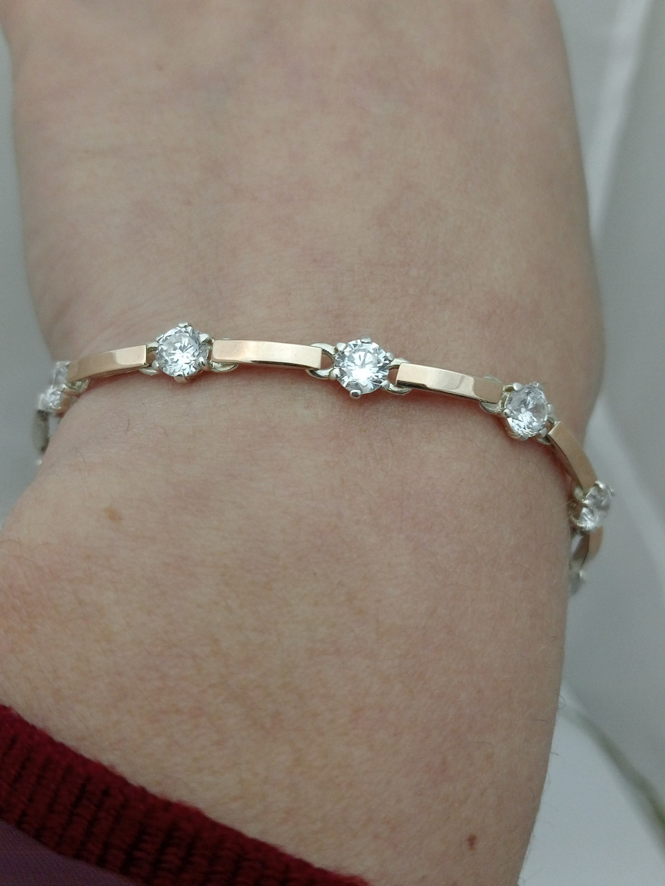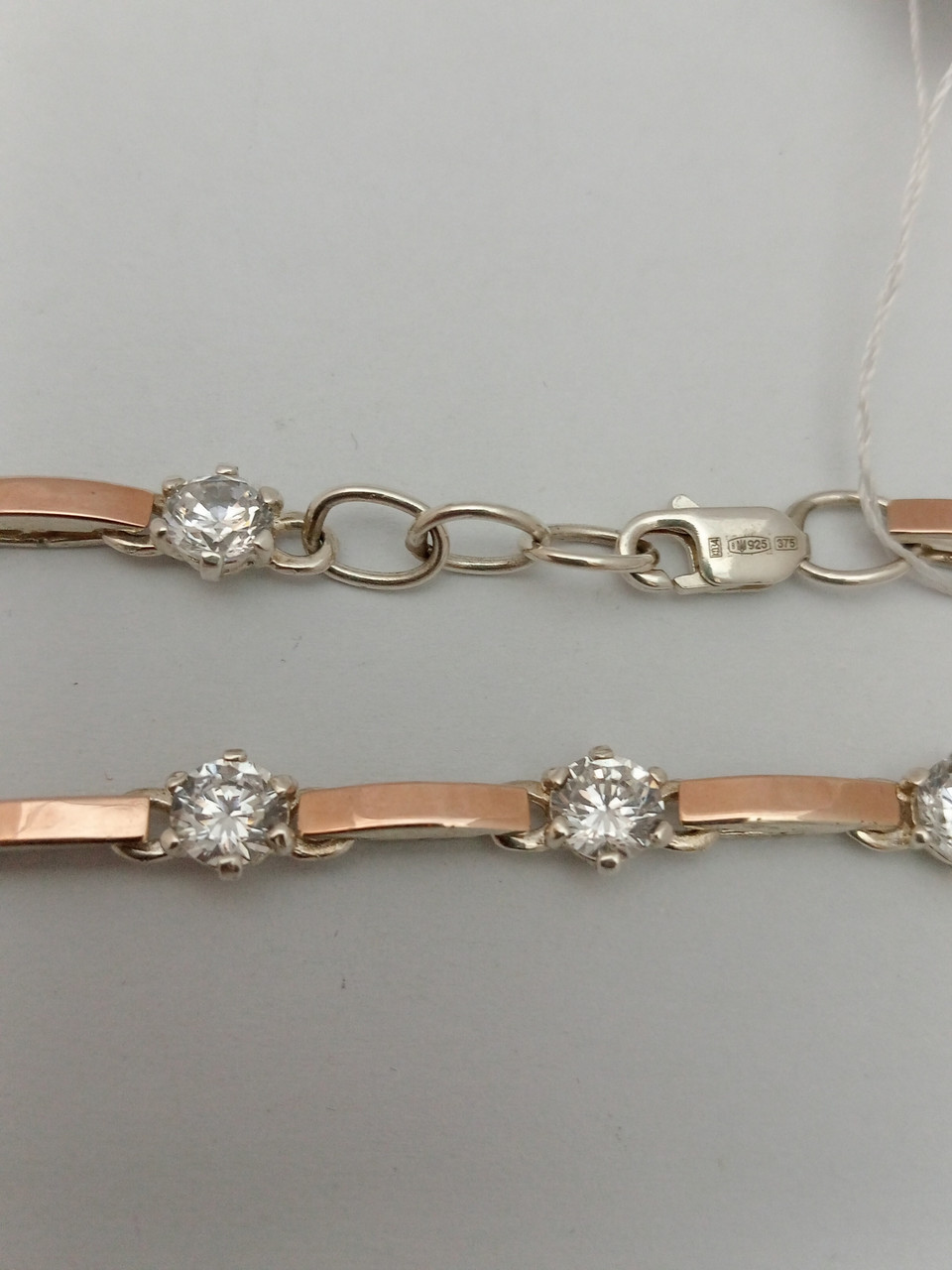 Оновіть свій стиль з вишуканим срібним браслетом 925 проби з золотою вставкою 375 проби. Цей браслет ідеально підійде для щоденного носіння або святкових подій, додаючи розкішний акцент до вашого образу. Застібка-карабін надійно фіксує браслет, даруючи вам впевненість у будь-якій ситуації. Ви можете комбінувати цей браслет з іншими прикрасами або носити його самостійно, створюючи стильні образи. Відправка замовлень відбувається кождного дня окрім понеділка, після надходження передоплати.