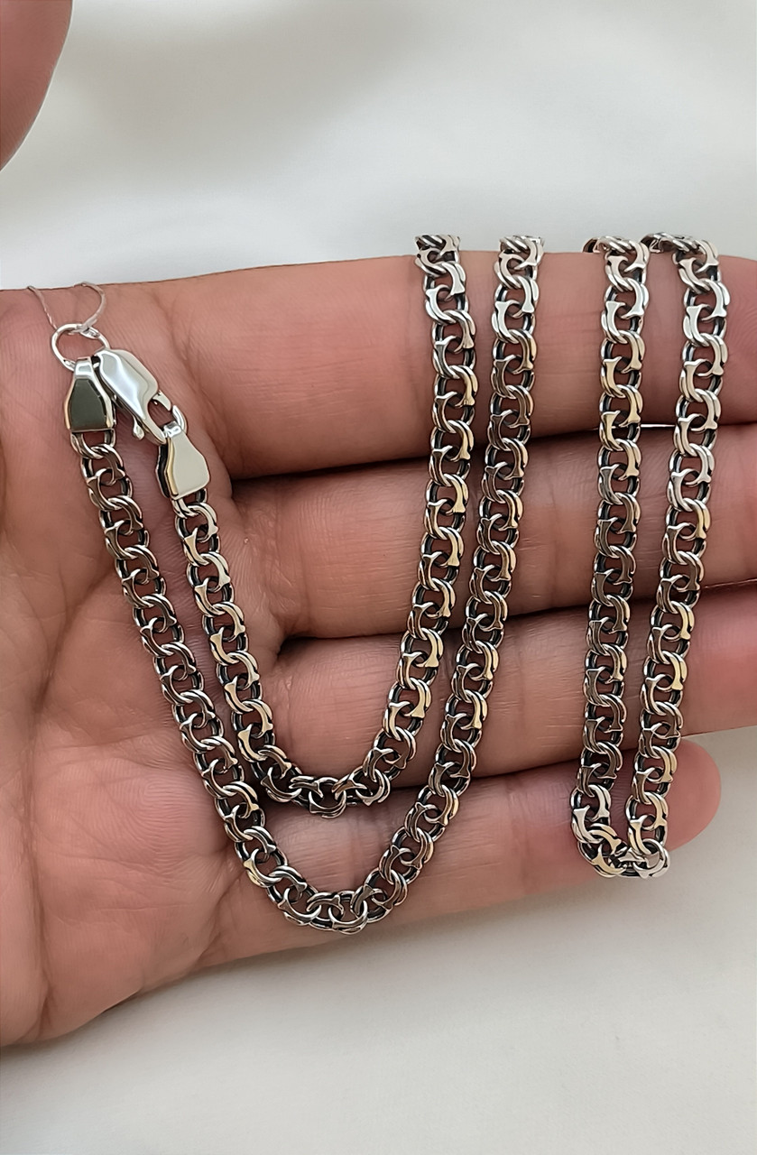 Срібний ланцюжок Бісмарк 925 проби з чудовим черненим покриттям стане ідеальним доповненням до будь-якого образу. Його універсальний дизайн підходить як для чоловіків, так і для жінок, роблячи цей аксесуар безсмертним класиком серед ювелірних виробів. Ви можете носити його як самостійно, так і поєднувати з підвісками, створюючи унікальні стилізації. Ланцюжок виробляється в різних розмірах: від 40 см до 60 см, тож ви обов’язково знайдете ідеальний варіант для себе. Завдяки високій якості срібла 925 проби і стильному черненому покриттю, цей ланцюжок буде радувати вас довгі роки. Відправка замовлень відбувається кождного дня окрім понеділка, після надходження передоплати.