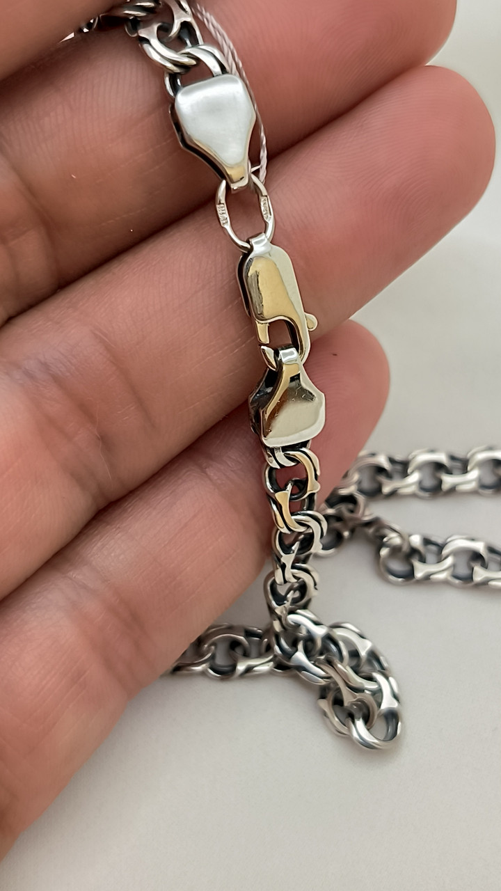 Срібний ланцюжок 925 проби Бісмарк з вишуканим чернінням – ідеальний аксесуар для будь-якого образу. Завдяки єдиному дизайну, цей ланцюжок прекрасно підійде як для повсякденного носіння, так і для особливих нагод. Виготовлений з високоякісного срібла, він демонструє стійкість до механічних впливів та зберігає свій блиск на довгий час. Ланцюжок виробляється в розмірах від 40 см до 60 см, що дозволяє підібрати оптимальну довжину відповідно до ваших уподобань. Тип застежки – карабіновий, що забезпечує зручність у використанні. Відправка замовлень відбувається кожного дня окрім понеділка, після надходження передоплати.