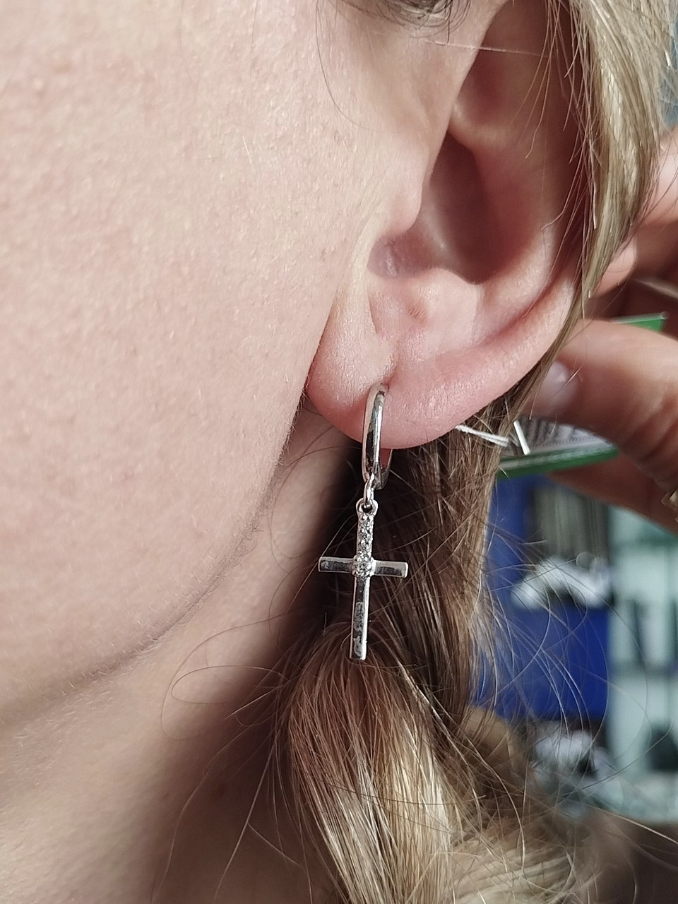 Срібні сережки хрестики Ukr-gold