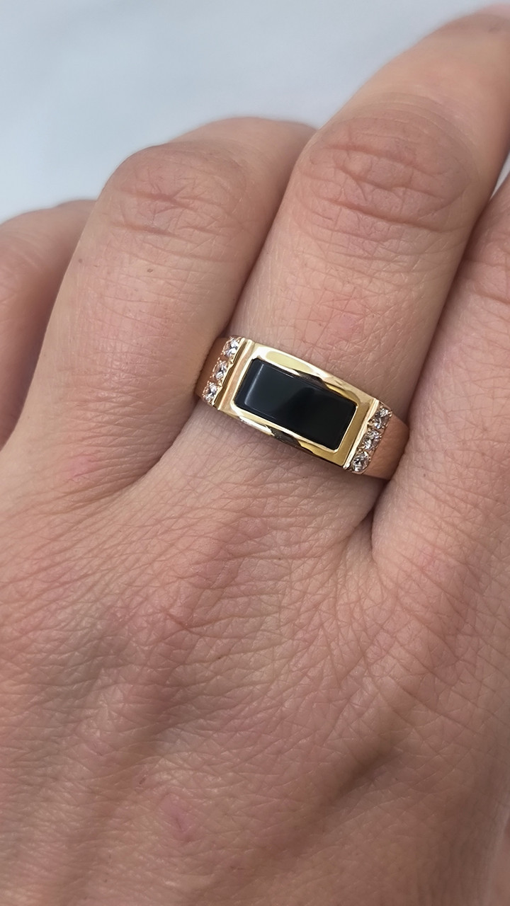 Чоловічий золотий персень із оніксом 585 проби — це вишуканий акцент для сучасного чоловіка. Неперевершена комбінація високоякісного золота та чорного оніксу створює унікальний стиль, який підходить для будь-якої нагоди. Перстень стане чудовим подарунком для чоловіків, які цінують ексклюзивність та елегантність. Виготовляється в розмірах від 16.0 мм. до 22.0 мм., що дозволяє легко підібрати ідеальний розмір. Відправка замовлень відбувається кожного дня окрім понеділка, після надходження передоплати.